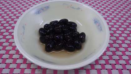 黒豆は,三温糖と淡口醤油で味付けして,スチームコンベクションオーブンで2時間半煮ました。