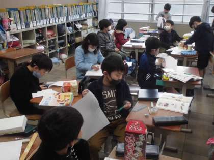 …中間休みが終わって教室に帰ると,一人一人が作った箱が