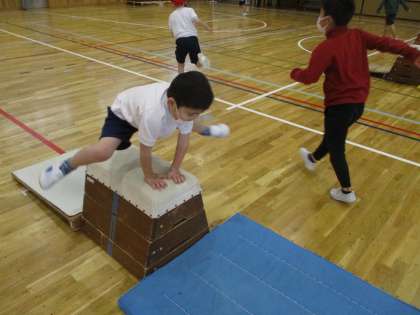 体育科の学習でとびばこあそびをしています。