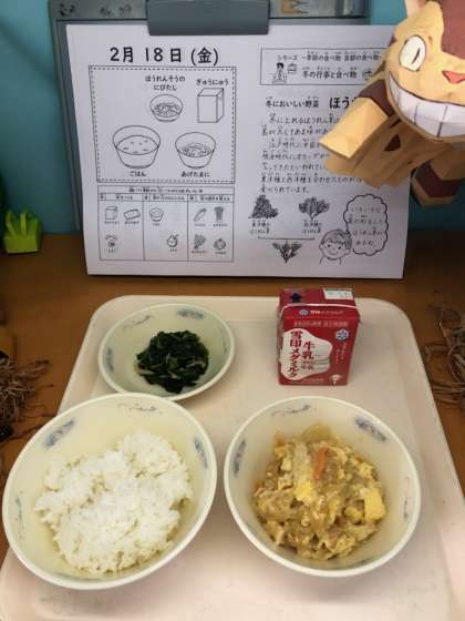 「ほうれん草のにびたしがおいしかったです。あげたまにもおいしかったです。」(3年児童)