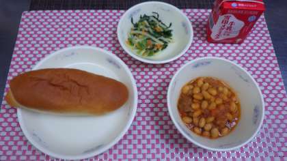 「野菜のあまみがあっておいしかったです。パンとポークビーンズとがあっていました。」(3年児童)