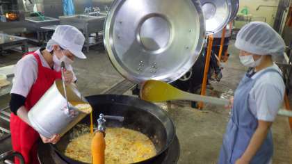 「親子煮の卵がとてもふわふわしていておいしかったです。たまねぎとにんじんもやわらかくてよかったです。」(6年児童)