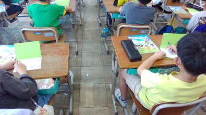 「イングリッシュ・パスポート」というふり返り冊子に,英語を使ってしてみたいことなどを書きました。