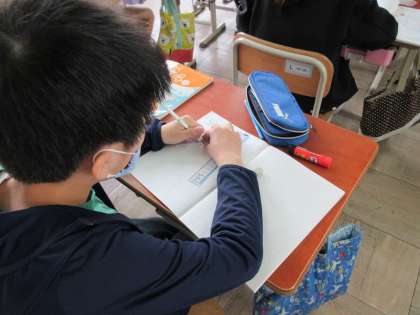 初めての分度器を使いながら今日は三角形を描きました。