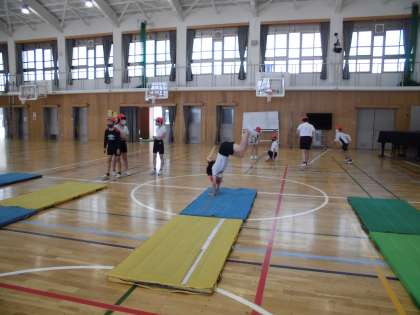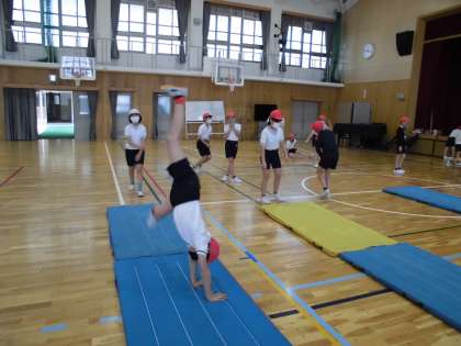 体育科でマット運動の学習をしています。
