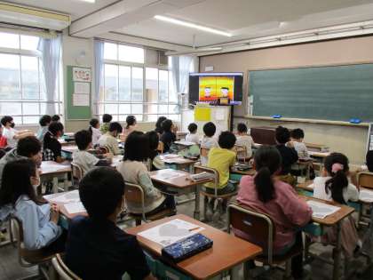 校長先生のお話を聞き,平和に過ごすためには何ができるかを考えました。