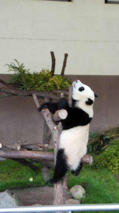 イルカショーやパンダなどの動物を楽しんでいます。