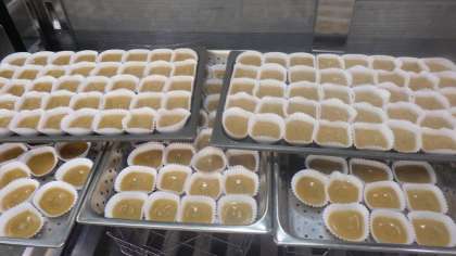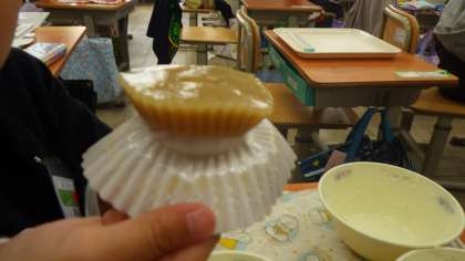「ういろうが,とってももちもちしていて甘くておいしかったです。おはしで切りにくかったので,すごい弾力だなと思いました。私の好みなので,また出してください。」(6年児童)