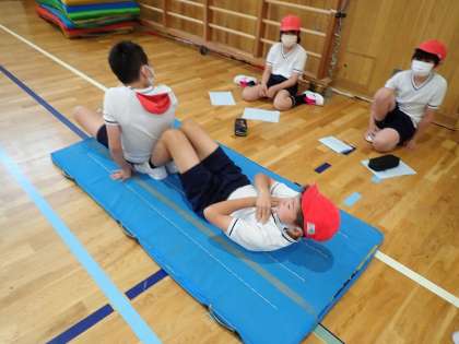 今日は,反復横跳び・上体起こし・立ち幅跳び・長座体前屈