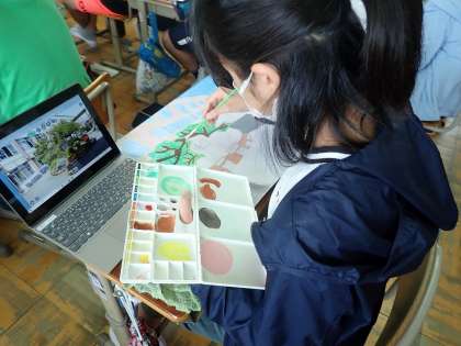 図画工作科では,学校の中での大切なところを絵に描いています。