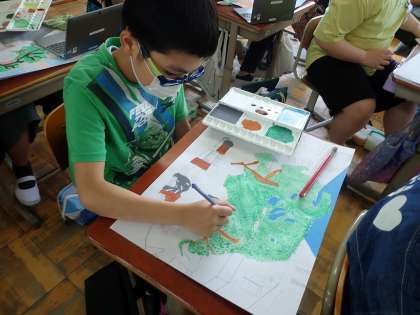 色もいくつも混ぜ合わせたり,筆の使い方を工夫したりして取り組んでいました。