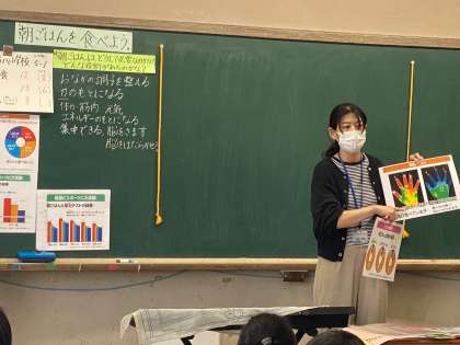 栄養教諭の有田先生に朝食を食べる大切さについての