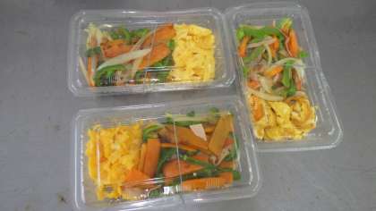 スクランブルエッグといろどりいためを作りました。