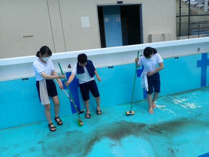 途中で太陽も出てきて,いい天気の中プール掃除ができました。