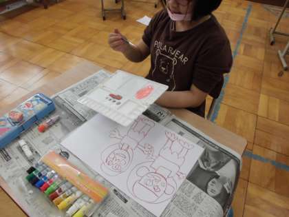 ずこうでは 「おともだちのえをかこう」でえのぐで おともだちのえを