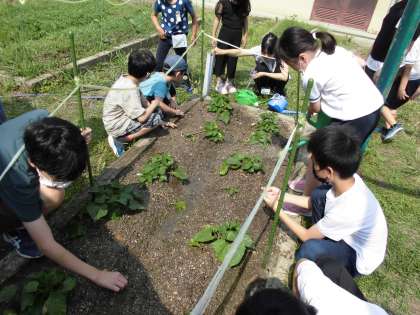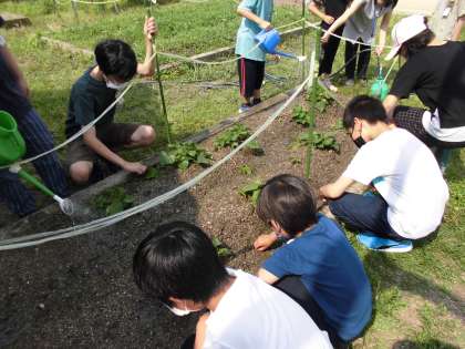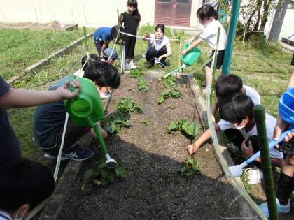 みんなで おみずを あげて います。