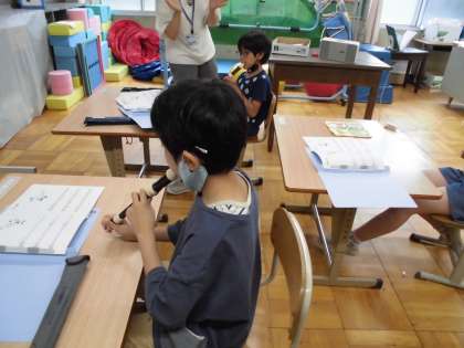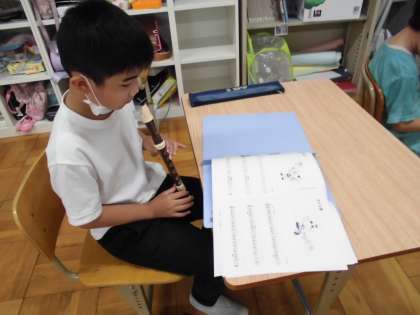 リコーダーを れんしゅうしています。