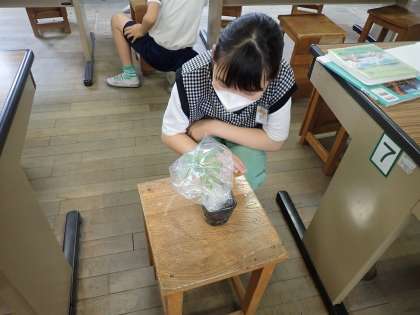 植物にふくろをかけ、葉があるものとないものとで