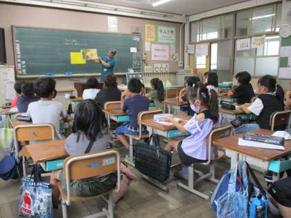 5日(火)の朝、じゃんけんほんの方による読み聞かせがありました。