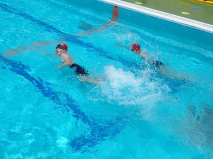 コースに分かれて、平泳ぎ・クロールを頑張りました。