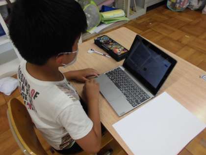3くみのしゃかいでは タブレットをつかって