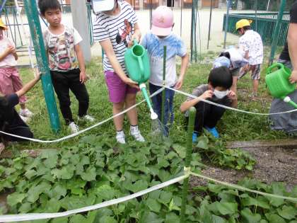たくさんおみずを あげて おおきな さつまいもが