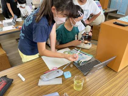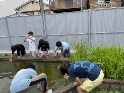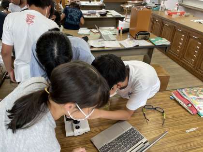 池の中に、どんな生物がいるのか顕微鏡で観察しました。