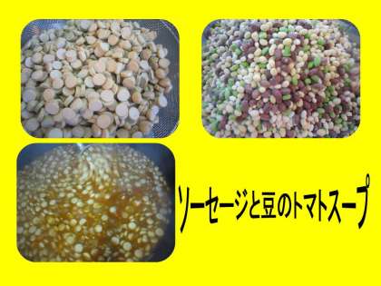 11月18日の給食は「ごはん、牛乳、あじのからあげ、アスパラガスのソティ、ソーセージと豆のトマトスープ」です。スープの豆はミックスビーンズという大豆、青大豆、金時豆、いんげん豆を合わせたものです。フランクフルトソーセージを一口に切って野菜とミックスビーンズと一緒に煮込みました。「私は豆が好きですが、4つの豆が入っていたとは知りませんでした。」「スープは苦手だったけれど、豆の色々な味がして美味しかったです。おかわりもしました。」