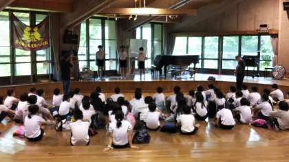 朝の集いをオリエンテーションホールでしました。