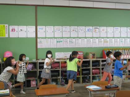 休み時間、2年生の教室から楽しい音楽が聞こえてきます。