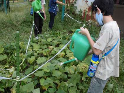 みんなで おみずをあげて もっとおおきくなるようにと