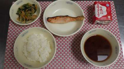 「さけがおいしかったです。きゅうしょくちょうりいんさん,いつもおいしいきゅうしょくをつくってくれてありがとう。」(1年児童)