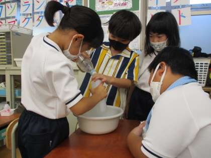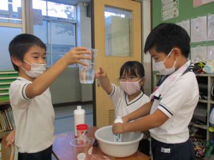 今日は、お家から持ってきた容器を使って