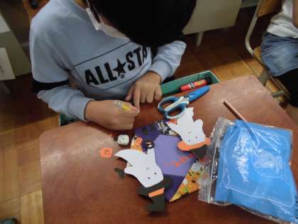 きょうは 10がつの りーすの かざりを つくりました。