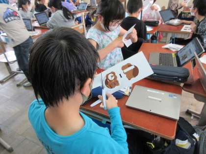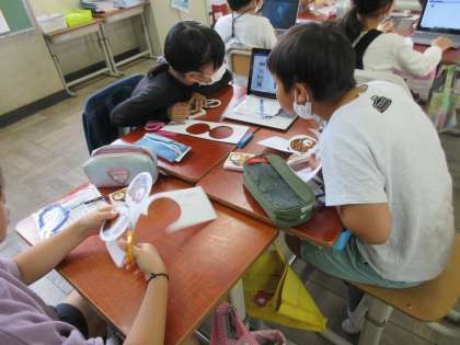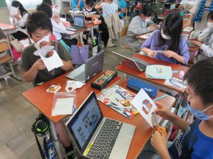 京都の会社について学び、圧電素子を使った、たぬきのかざりを作りました。