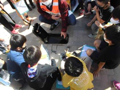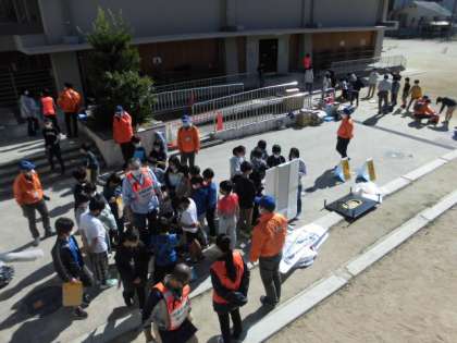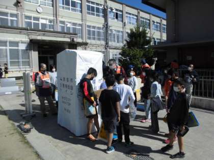 学校にある防災グッズを体験しました。