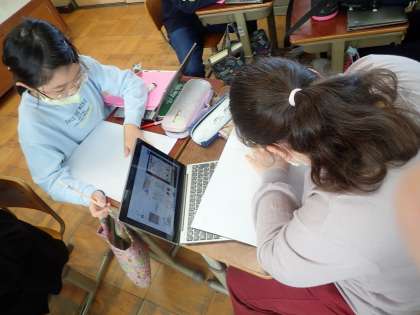 国語科では、パンフレットづくりをしています。