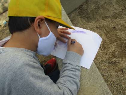 図画工作科では、学校にあるでこぼこを見つけて紙に移しました。いろいろなでこぼこを見つけることができ、とても楽しかったです。