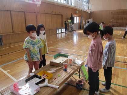 お店屋さんの人からおもちゃの遊び方の説明をしてもらい、楽しく遊ぶことができました。