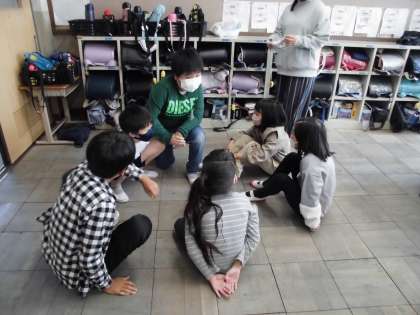 きょうしつ・たいいくかん・うんどうじょうに わかれて