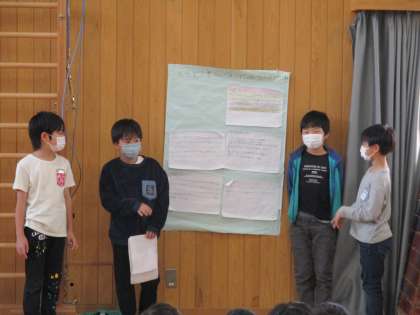 総合的な学習の時間で調べてきた校区にある施設について発表しました。
