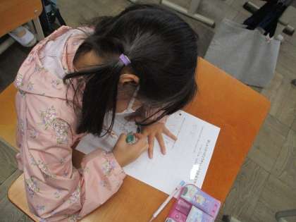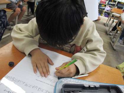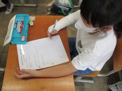 各教室で、学習発表会のふり返りをしました。がんばったことやうれしかったことなどをプリントに書きました。