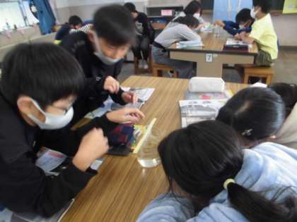 今日は理科室で実験をしました。