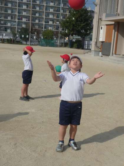 1ねんの たいいくでは 「ボールあそび」をしています。