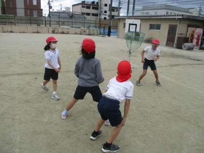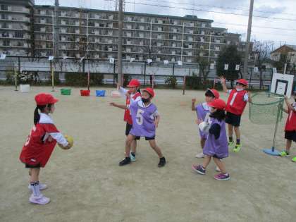 相手チームがいないところにボールを投げたり、味方にボールを渡せるようにしたり子どもたちの中で工夫する姿が見られます。