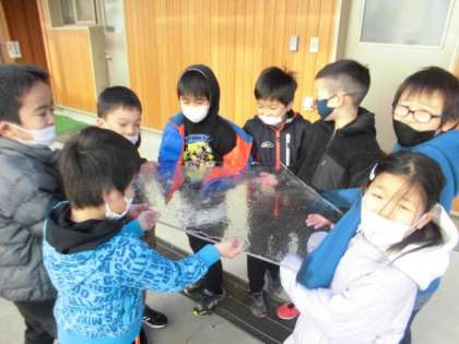 朝,凍っていました。