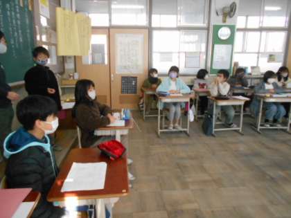 冬のお楽しみ会に何をするか、学級会を開き、話し合って決めました。全員が自分の意見に理由をつけて発表し、たくさんの案の中から2つに決めました。