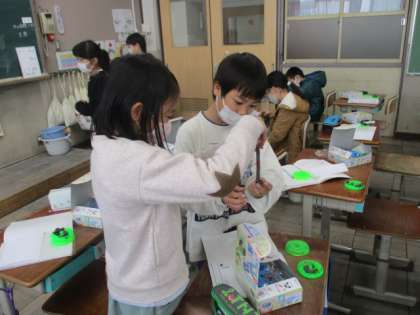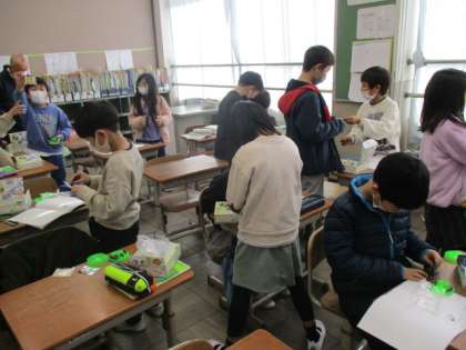 早速、磁石の極のふしぎ、引きつけられるものの違い、鉄を磁石に変えるなど、たくさんの発見をしていました。