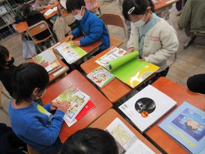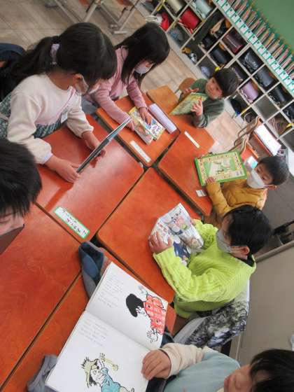 国語科の学習で、自分の好きな本を友達に紹介したり