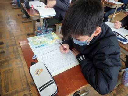 自分の考えを書く前に、3つの教材分に触れ